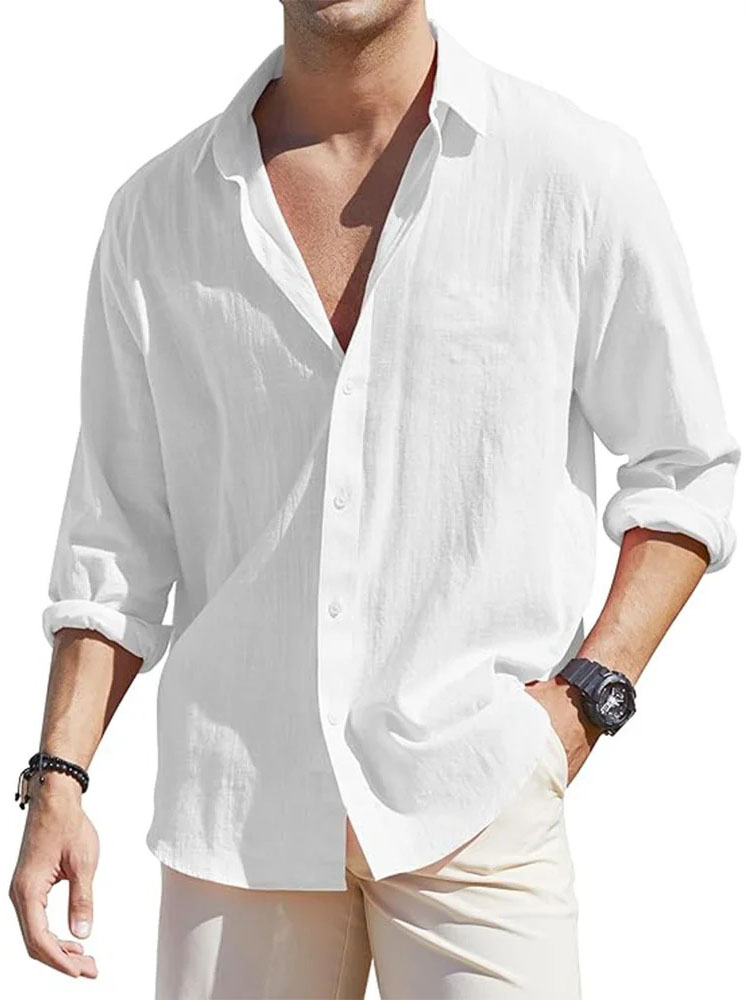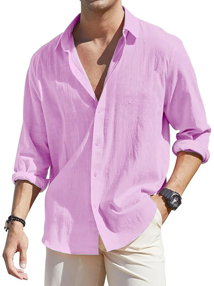 Men's Casual Loose Basic Cotton And Linen Long-sleeved Shirt