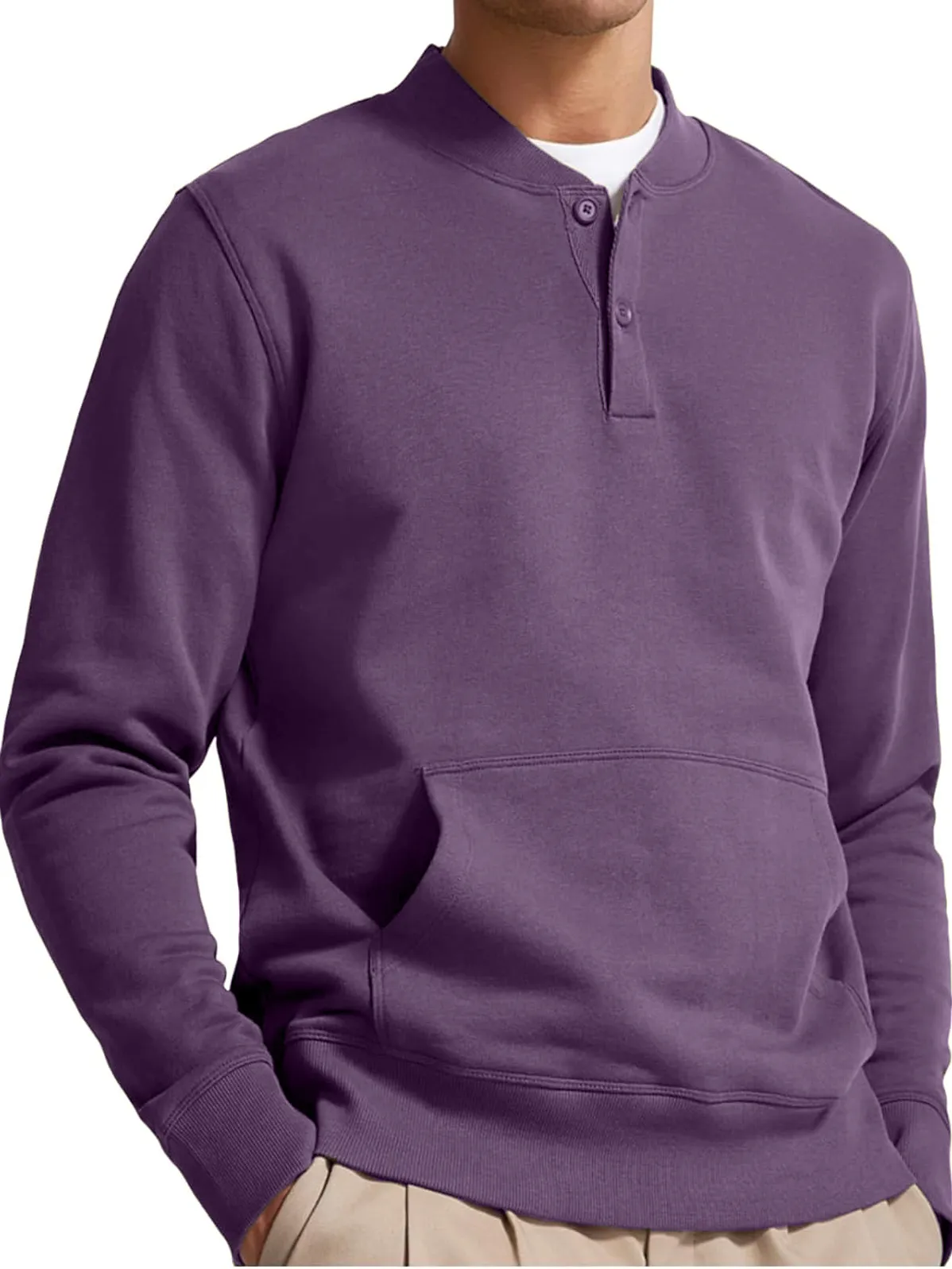 Men's Henley Casual Long Sleeve Stylish Button Pocket Pullover Sweatshirt